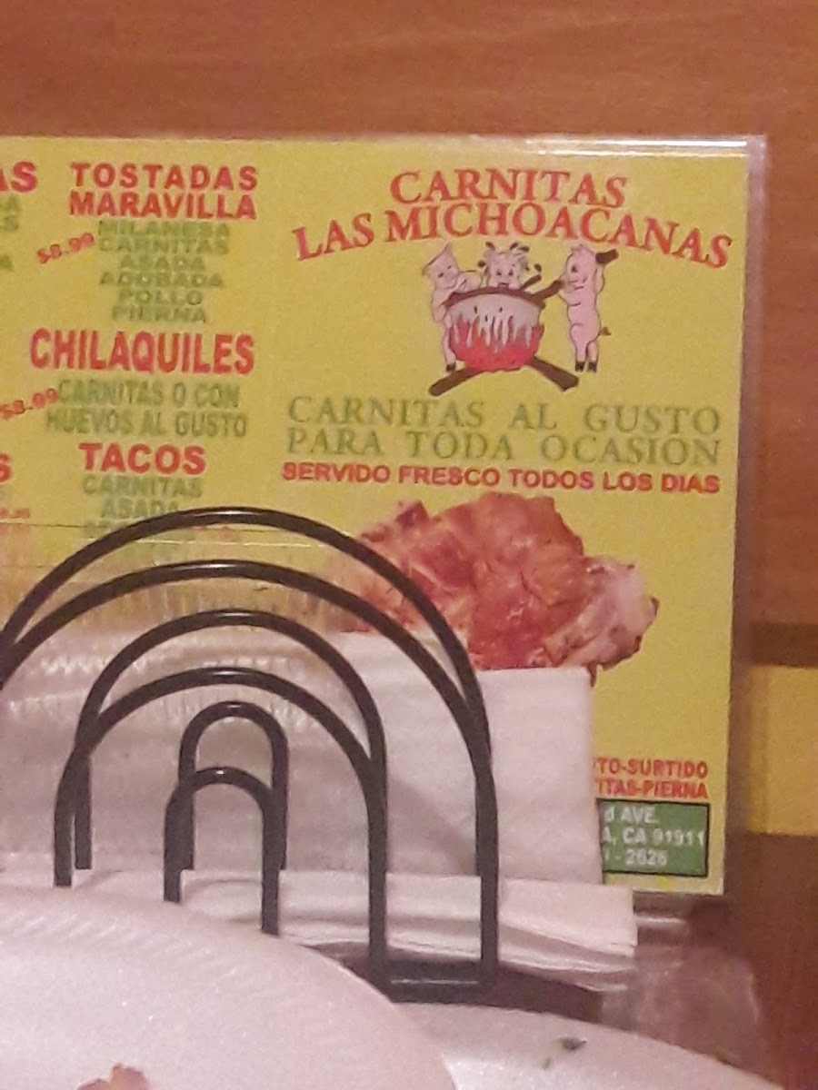 Chilaquiles with choice of carnitas: buche, cuerito, surtido, macisa. Served with red or green sauce.